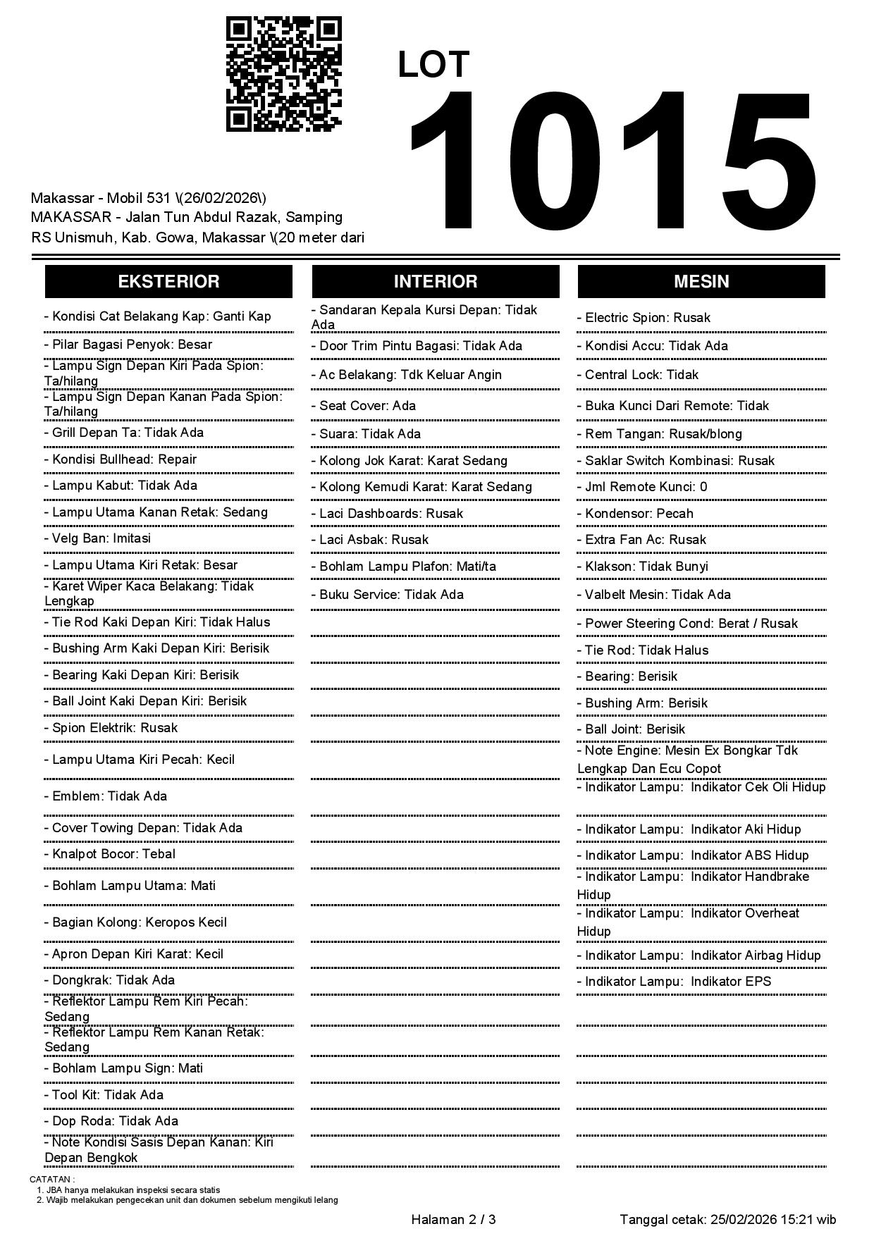 1. Peserta lelang wajib cek unit & dokumen