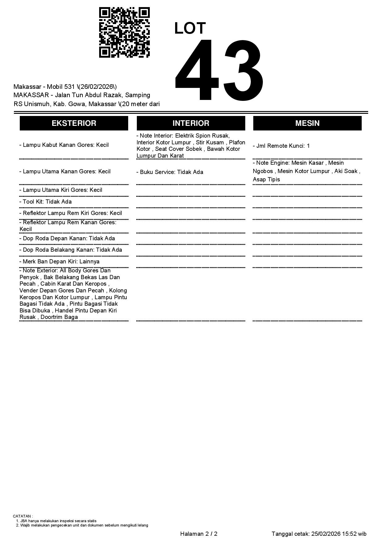 1. Peserta lelang wajib cek unit & dokumen