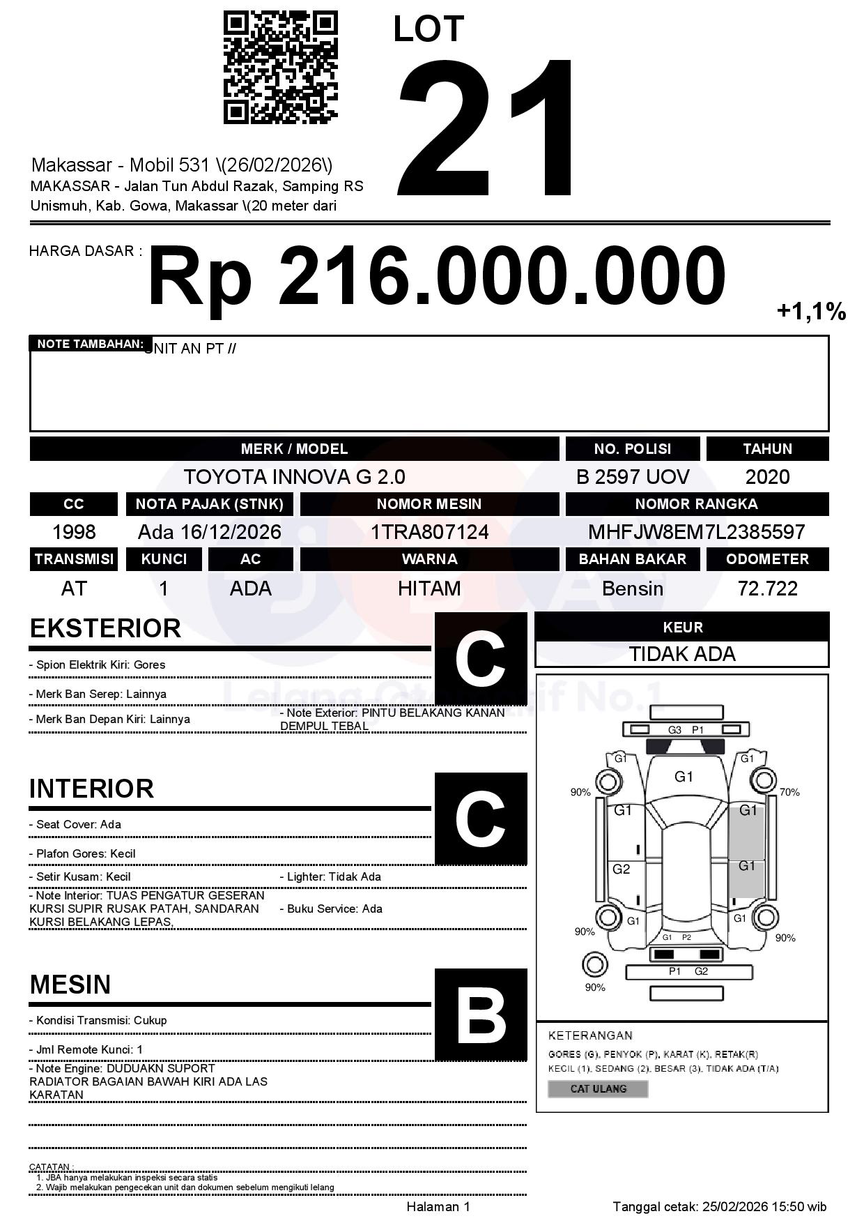 Tanggal Lelang: 26/02/2026 | 13:00 WITA