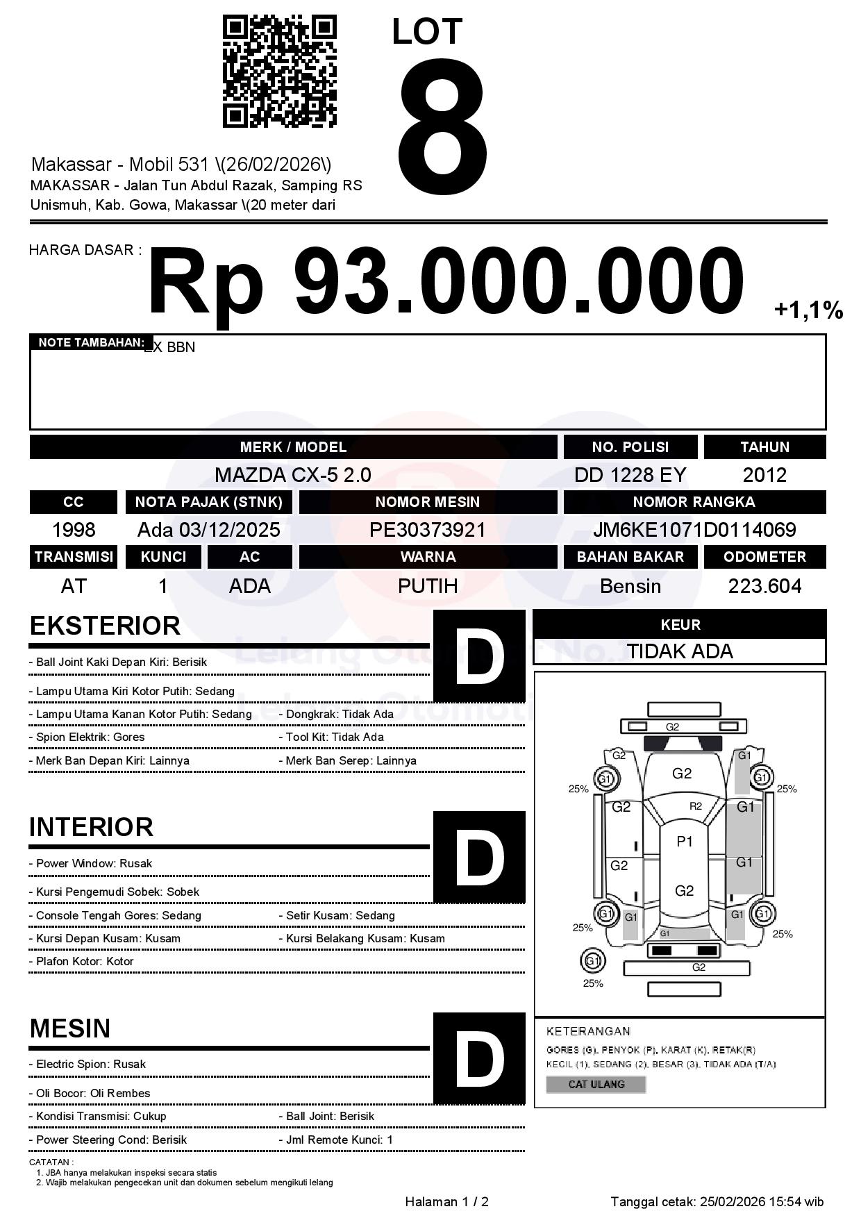 Tanggal Lelang: 26/02/2026 | 13:00 WITA