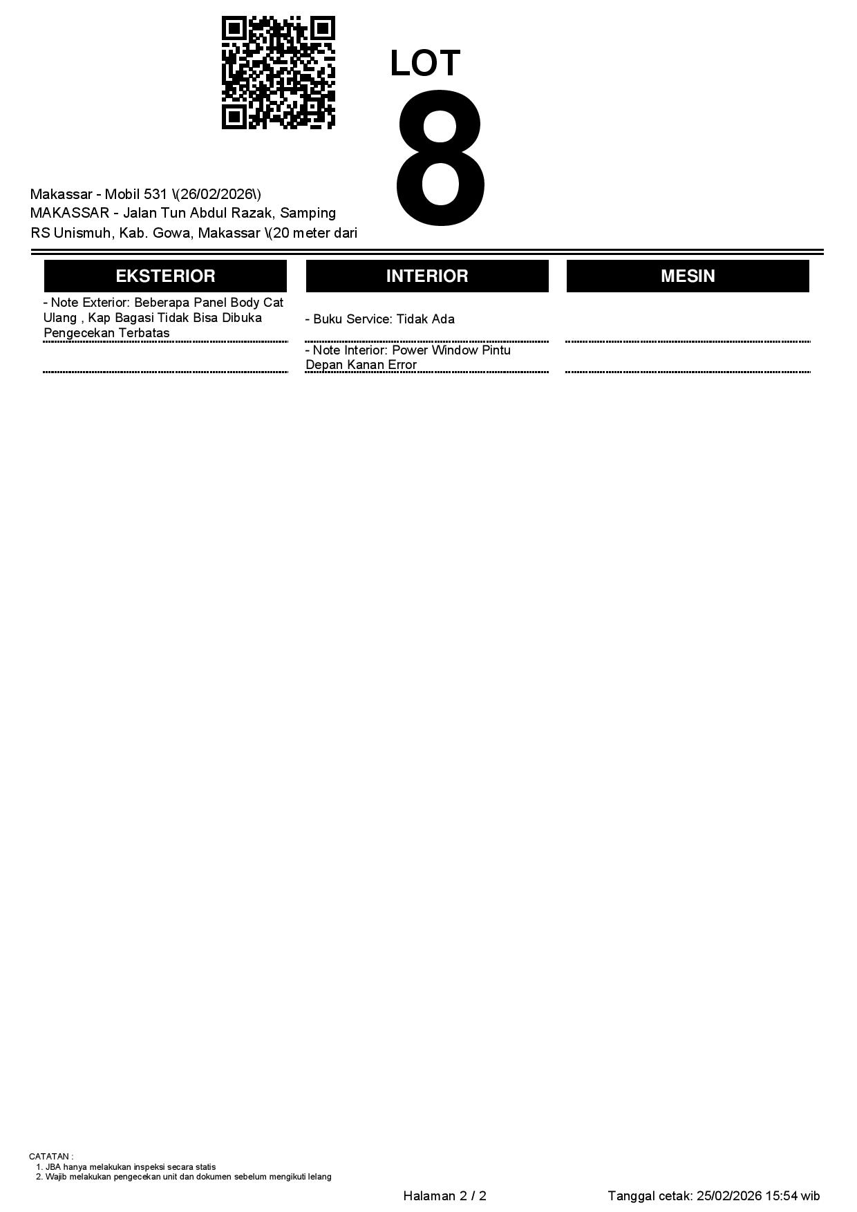 2. Peserta lelang wajib cek unit & dokumen