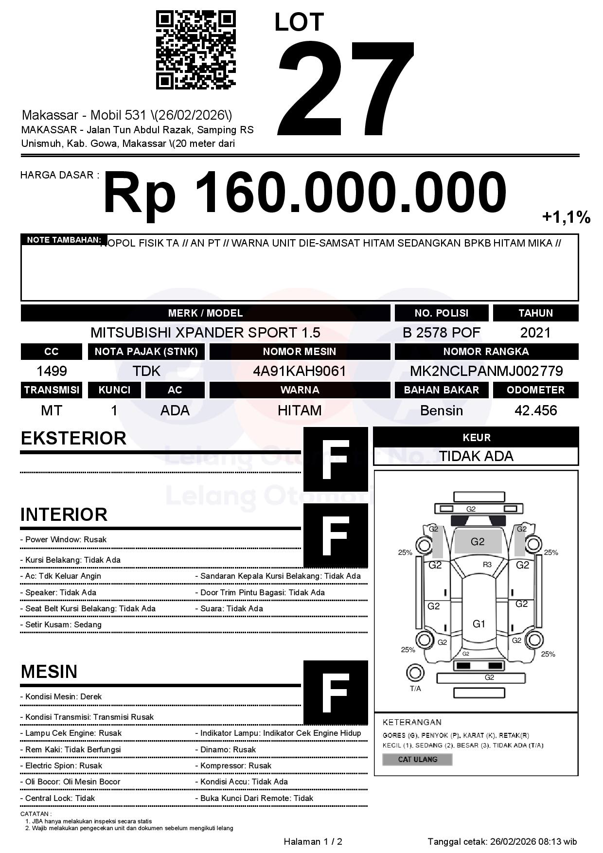 Tanggal Lelang: 26/02/2026 | 13:00 WITA