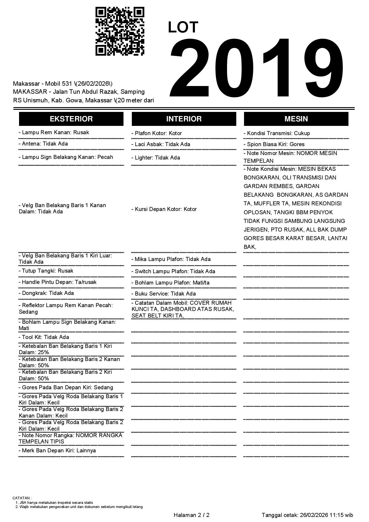 2. Peserta lelang wajib cek unit & dokumen