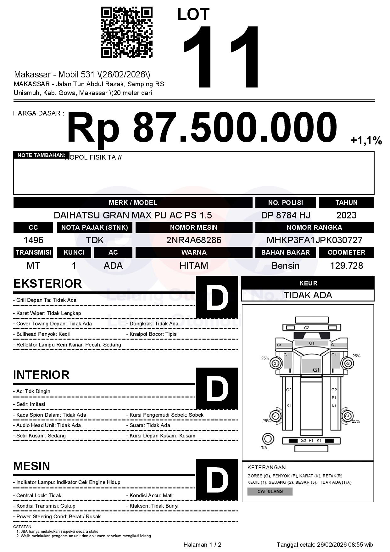 Tanggal Lelang: 26/02/2026 | 13:00 WITA
