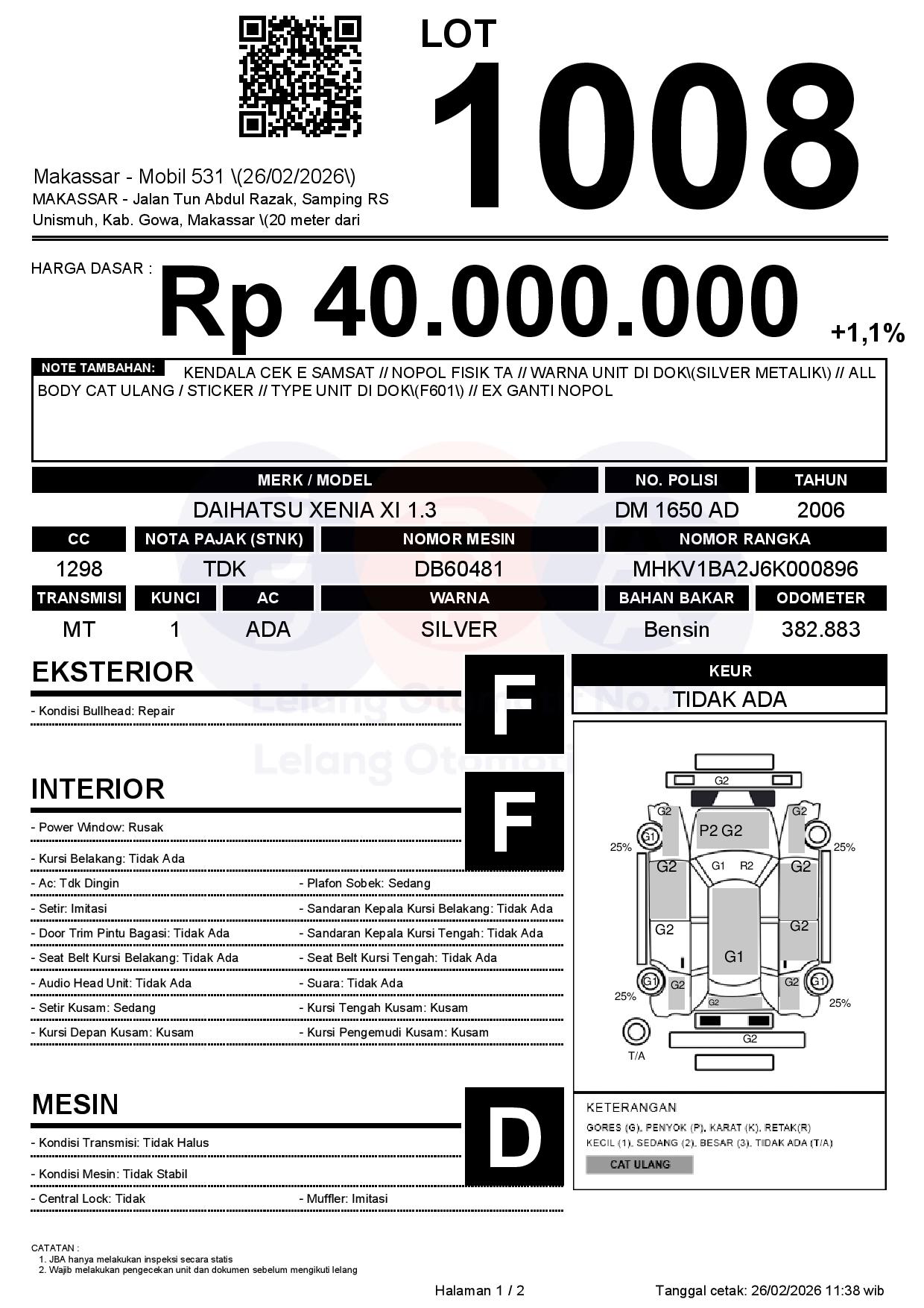 Tanggal Lelang: 26/02/2026 | 13:00 WITA