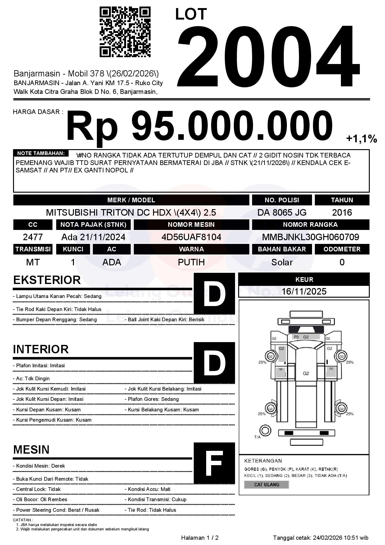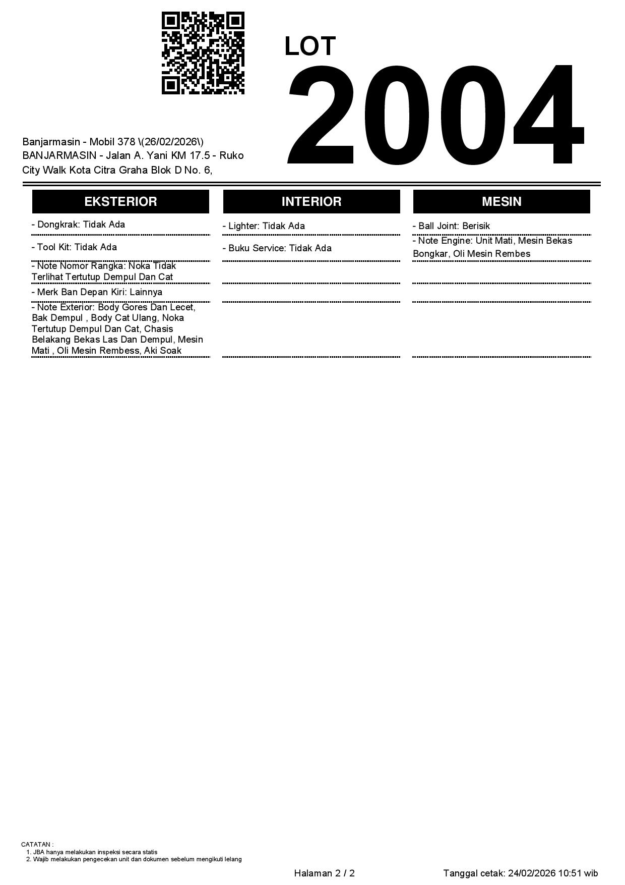 Tanggal Lelang: 26/02/2026 | 14:00 WITA