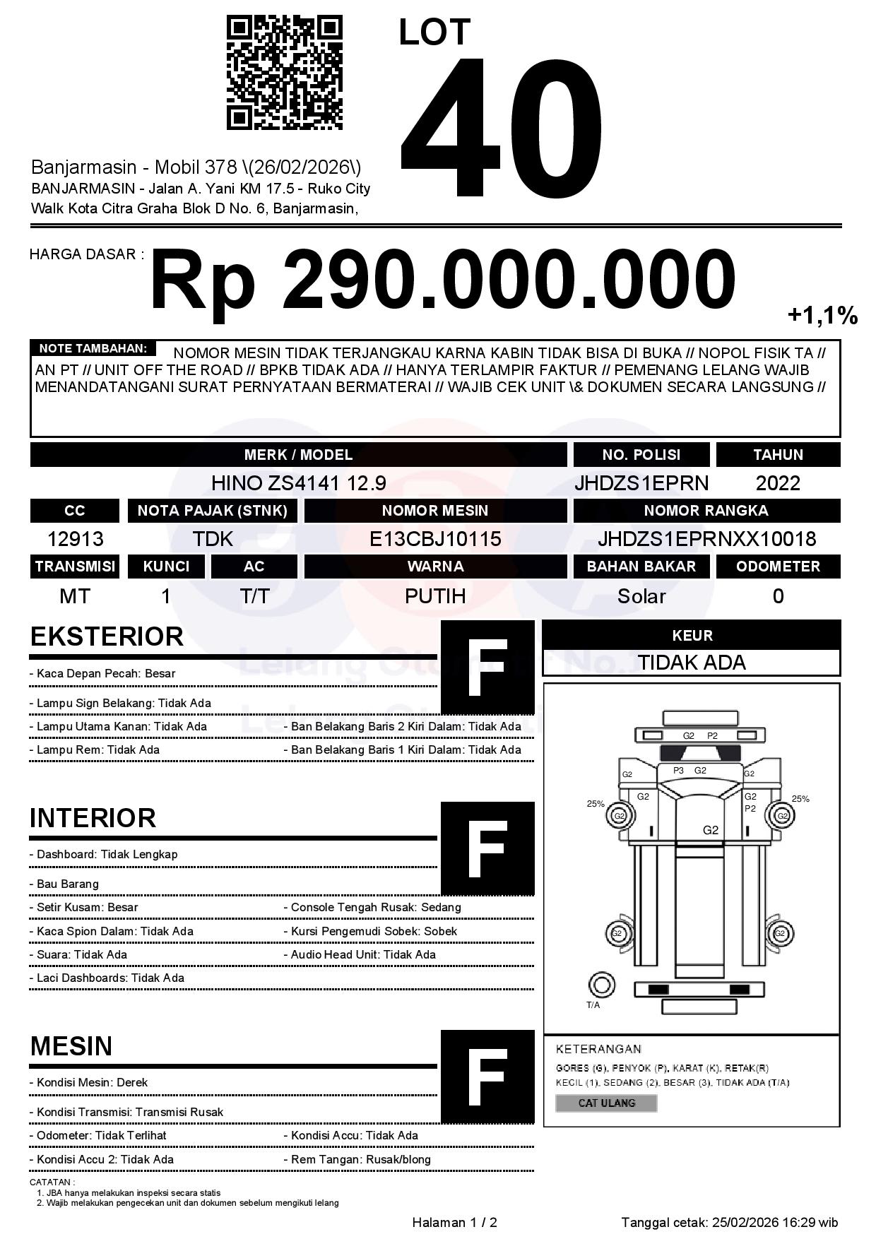 NOMOR MESIN TIDAK TERJANGKAU KARNA KABIN TIDAK BISA DI BUKA // NOPOL FISIK TA // AN PT // UNIT OFF THE ROAD // BPKB TIDAK ADA // HANYA TERLAMPIR FAKTUR // PEMENANG LELANG WAJIB MENANDATANGANI SURAT PERNYATAAN BERMATERAI // WAJIB CEK UNIT & DOKUMEN SECARA LANGSUNG //