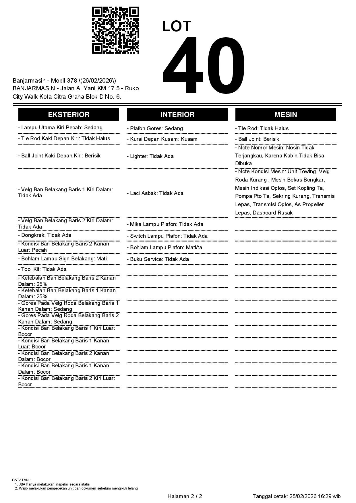 2. Peserta lelang wajib cek unit & dokumen