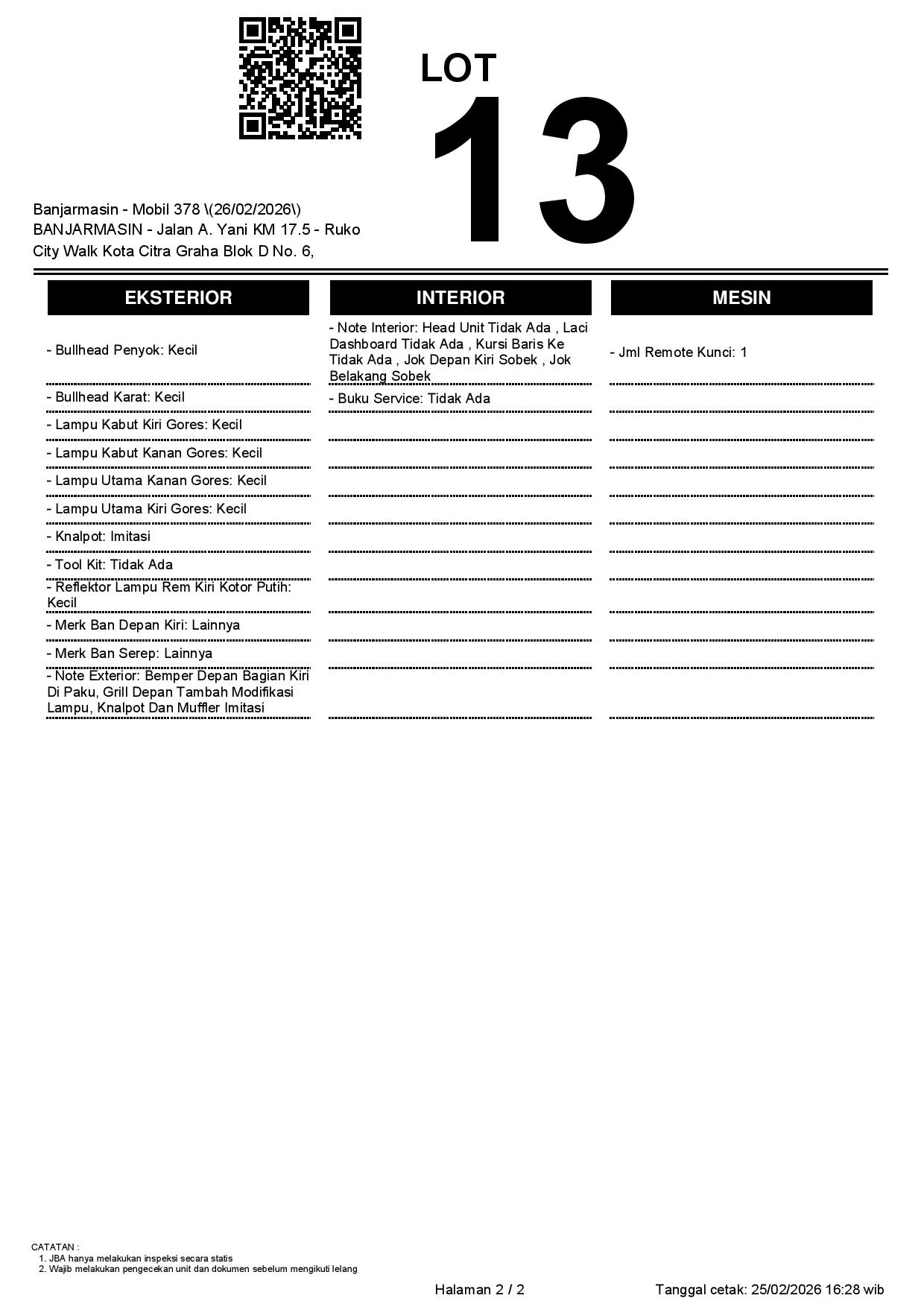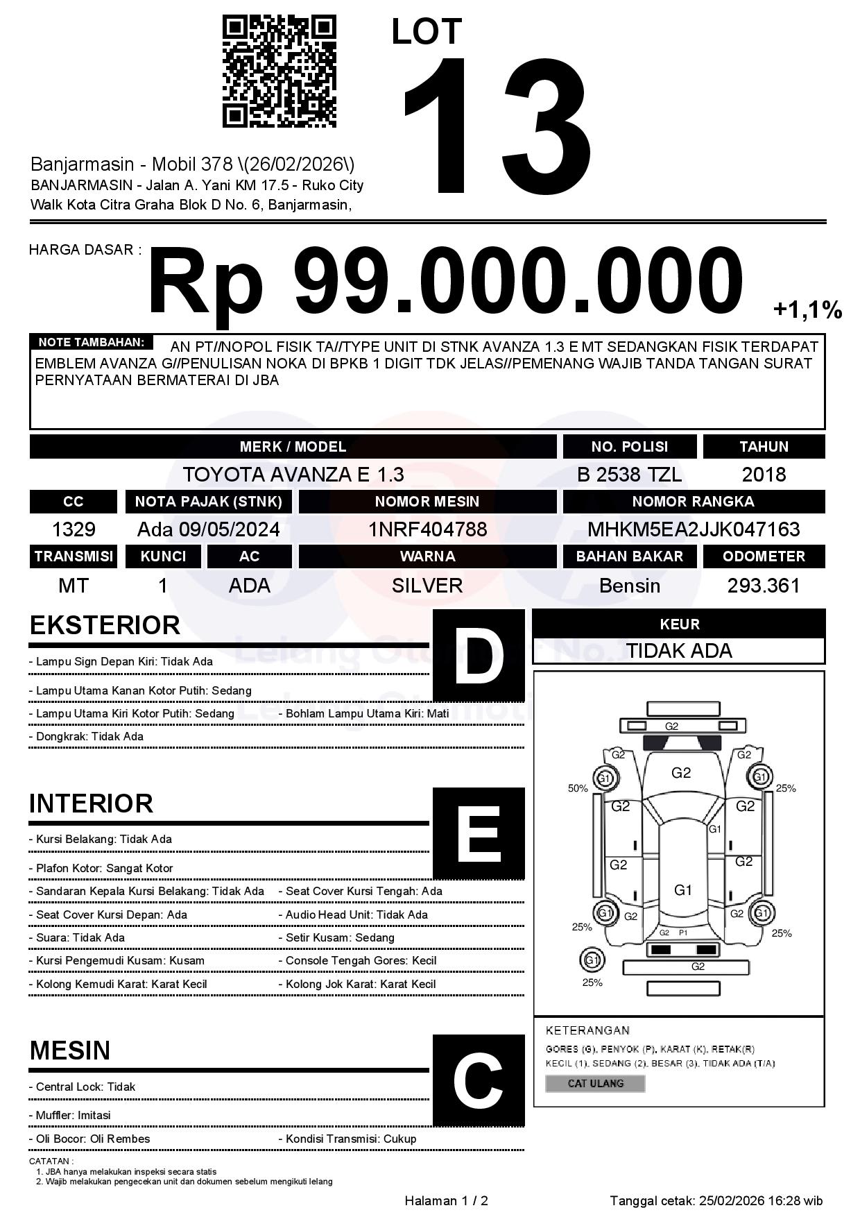 Tanggal Lelang: 26/02/2026 | 13:00 WITA