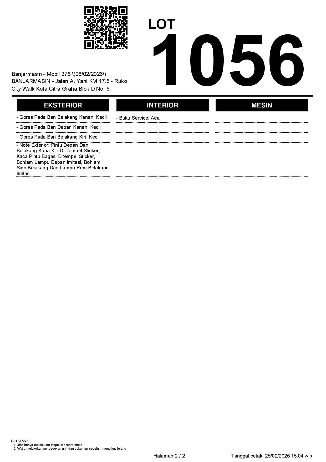 Tanggal Lelang: 26/02/2026 | 14:00 WITA