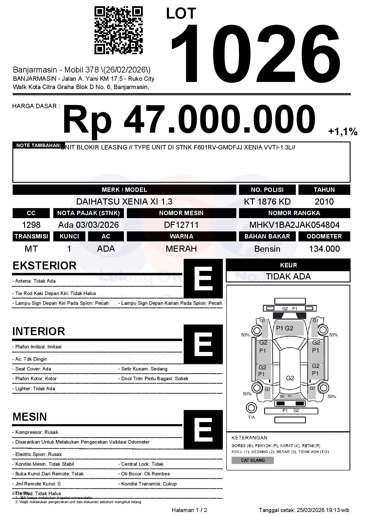 Tanggal Lelang: 26/02/2026 | 14:00 WITA