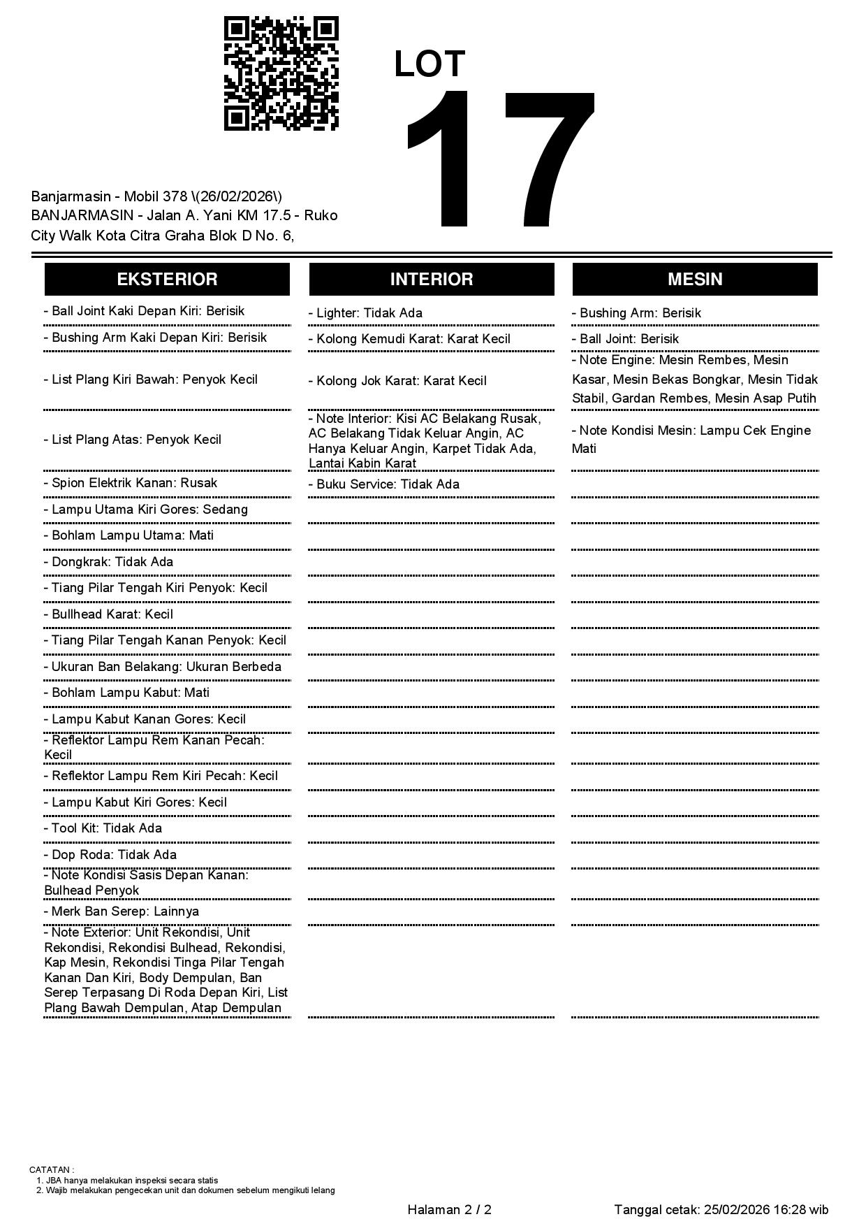 2. Peserta lelang wajib cek unit & dokumen