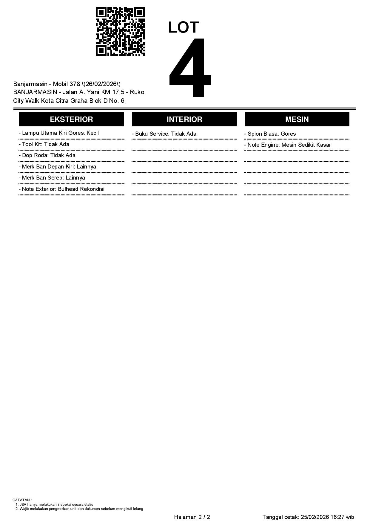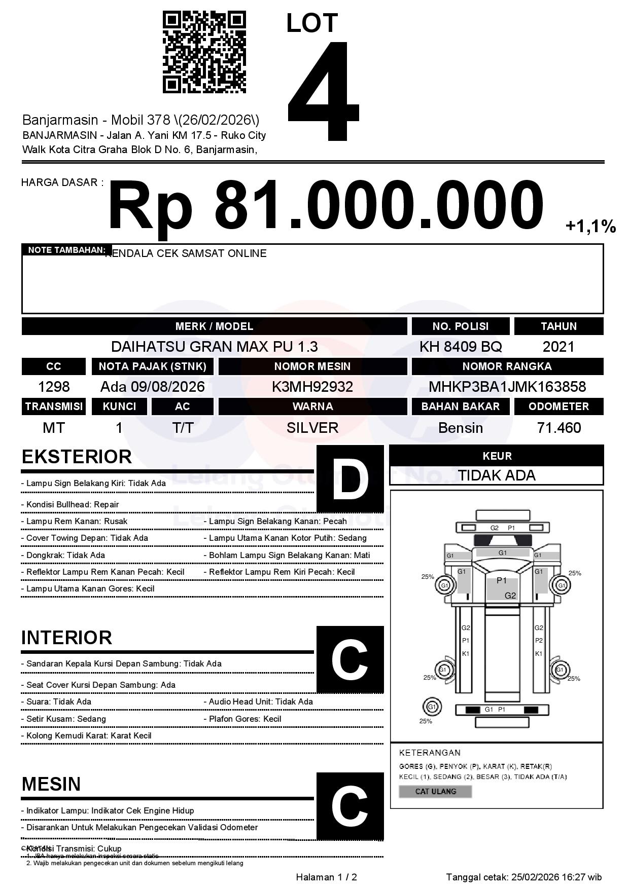Tanggal Lelang: 26/02/2026 | 13:00 WITA