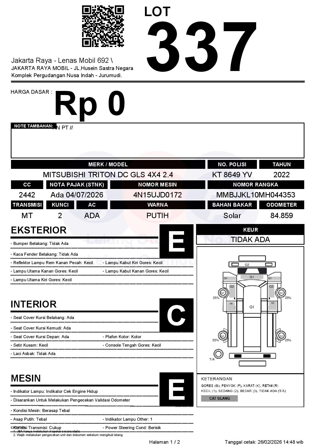 Tanggal Lelang: 26/02/2026 | 14:00 WITA
