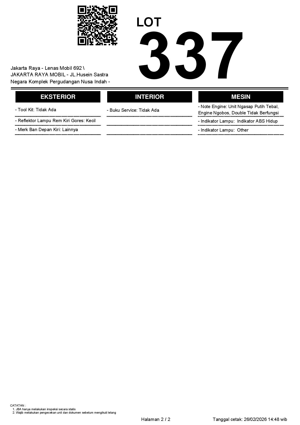 1. Peserta lelang wajib cek unit & dokumen
