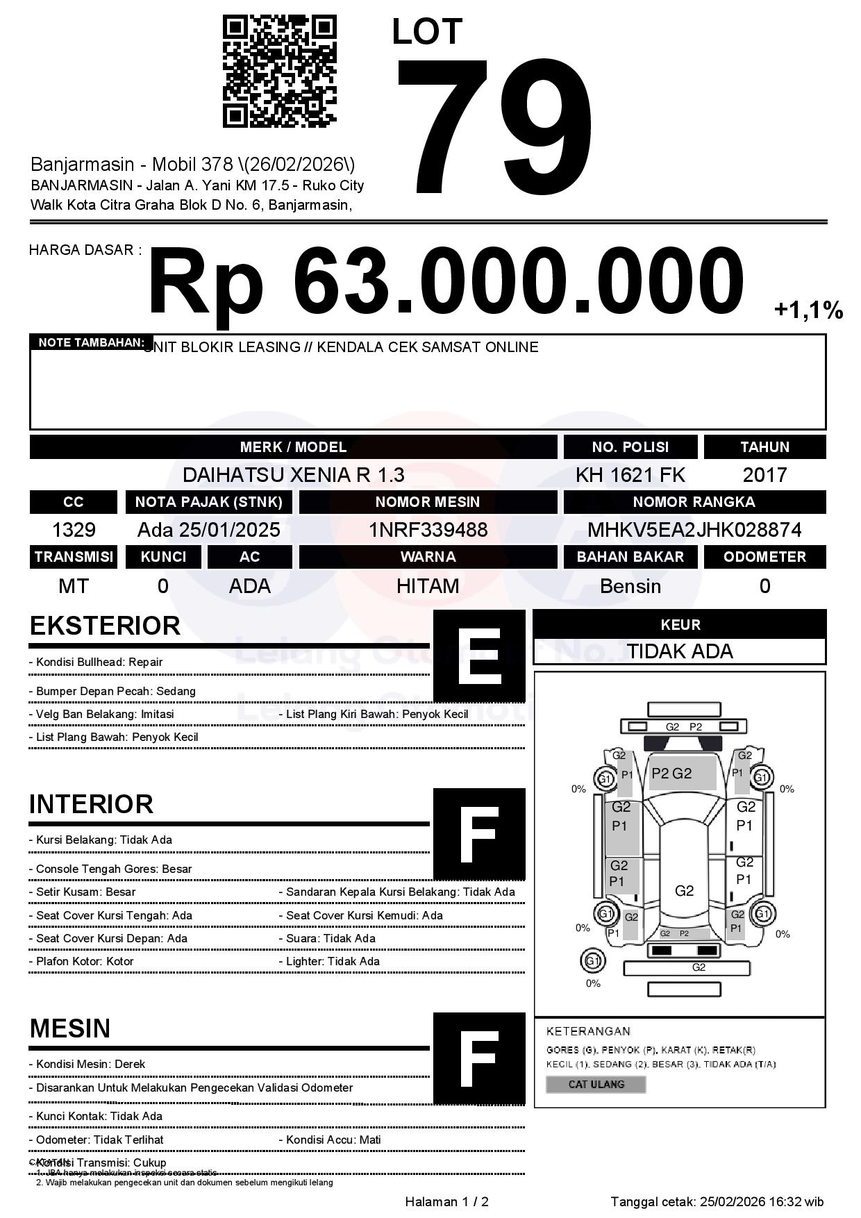 Tanggal Lelang: 26/02/2026 | 13:00 WITA