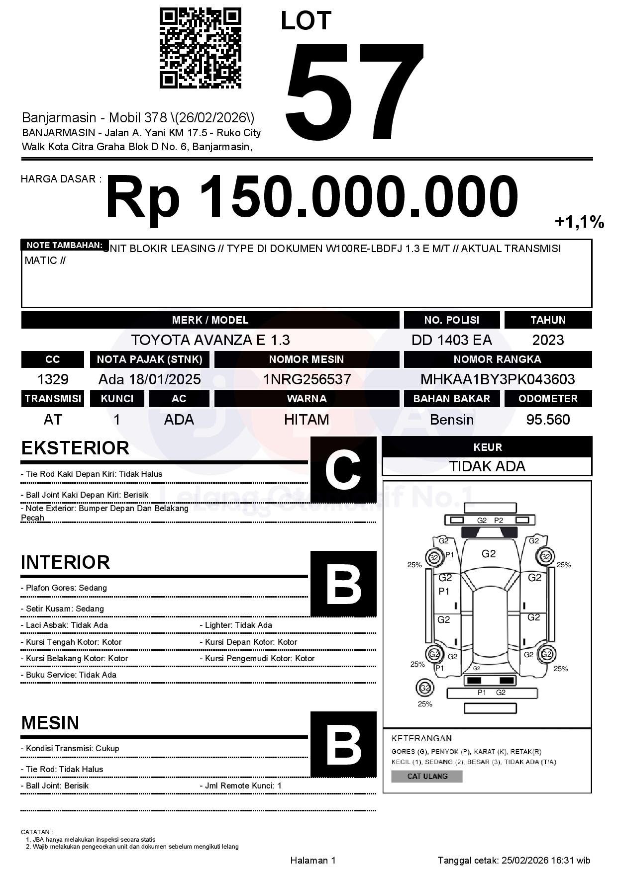 Tanggal Lelang: 26/02/2026 | 13:00 WITA