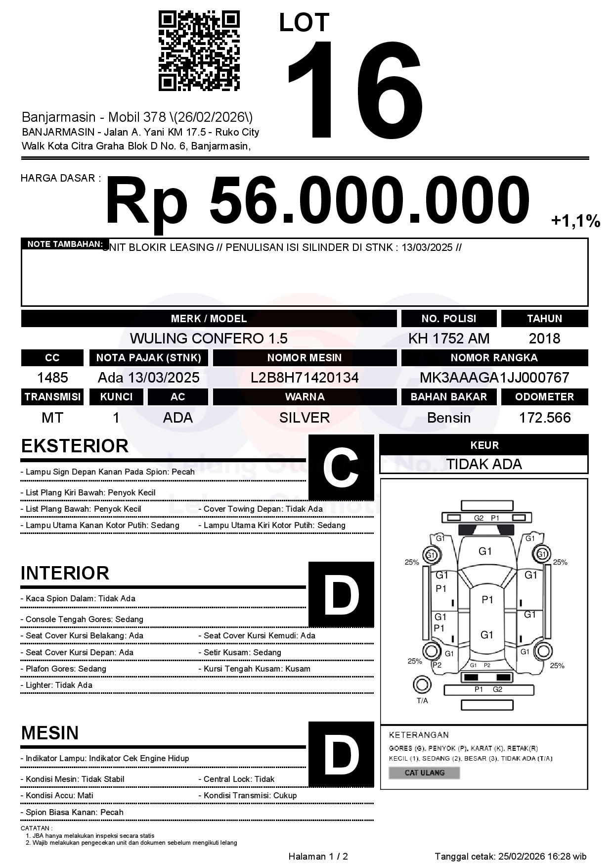 Tanggal Lelang: 26/02/2026 | 13:00 WITA