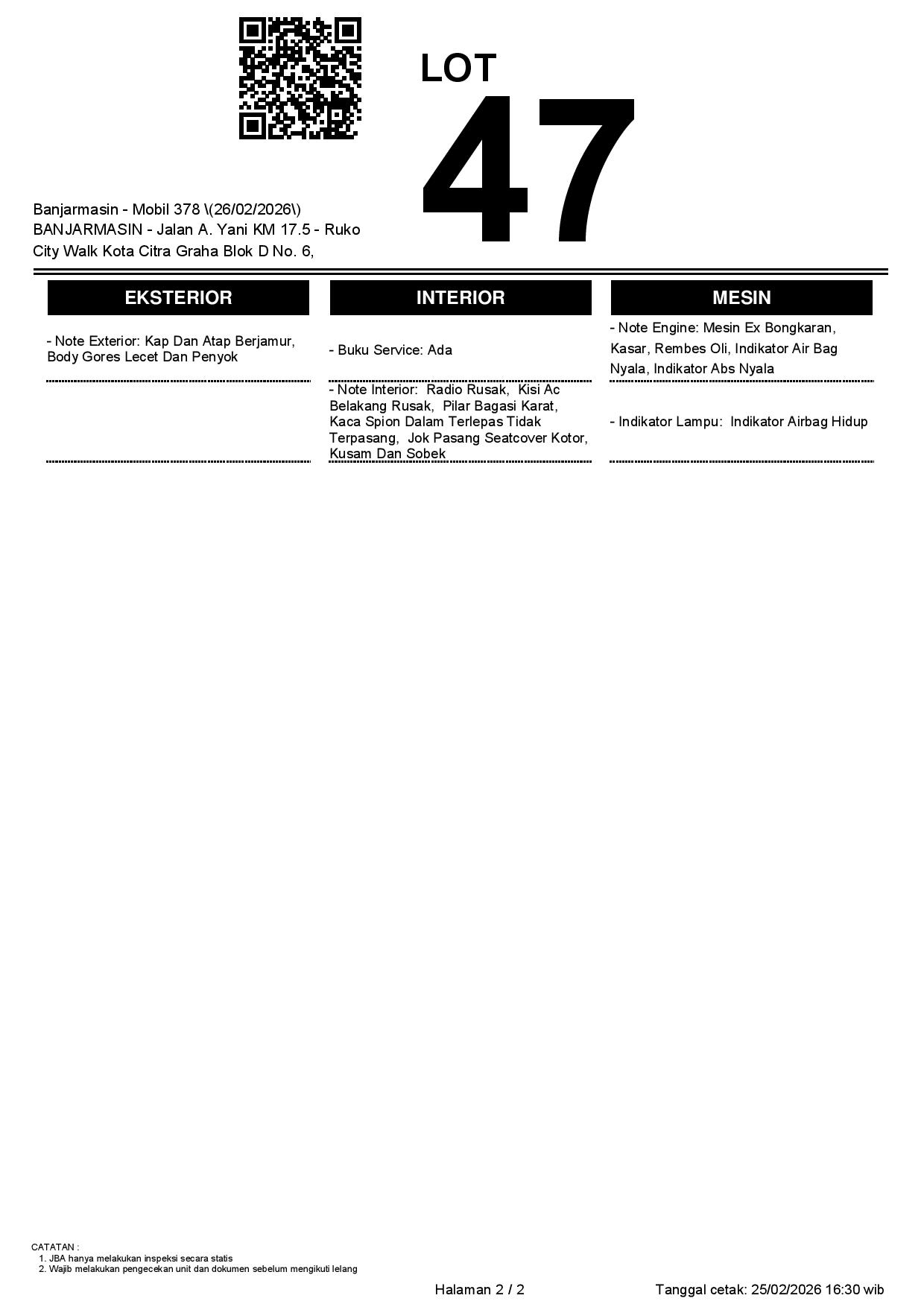 2. Peserta lelang wajib cek unit & dokumen