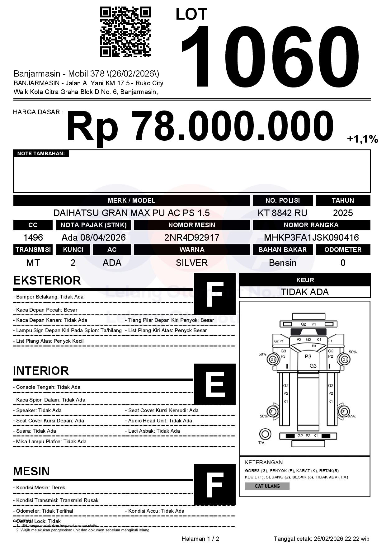 Tanggal Lelang: 26/02/2026 | 14:00 WITA