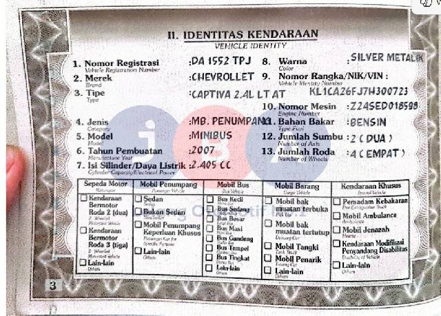 MASA BERLAKU STNK : 01/12/2025 // PENULISAN ISI SILINDER DI STNK : 2405 CC // PENULISAN ISI SILINDER DI NOTICE PAJAK : 2400 CC // TIPE PADA DOK CAPTIVA 2.4L LT AT // KENDALA CEK SAMSAT //