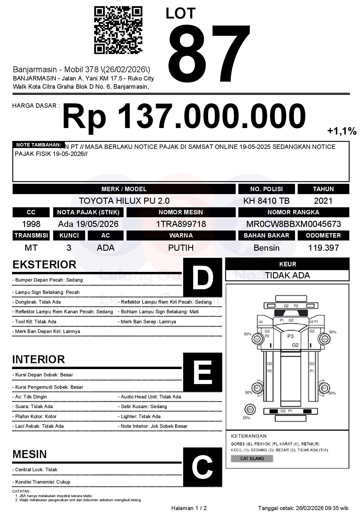 Tanggal Lelang: 26/02/2026 | 13:00 WITA