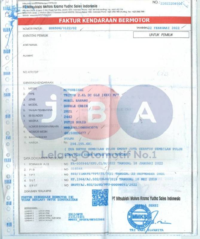 UNIT AN PT // PENULISAN MODEL DI STNK : DOUBLE CABIN // PENULISAN MODEL DI NOTICE PAJAK : PICK UP // MASA BERLAKU KEUR TIDAK DIKETAHUI // KEUR BERBENTUK KARTU // PENULISAN NAMA PEMILIK PADA LEMBAR NOTICE PAJAK KURANG (PT) // KENDALA CEK E SAMSAT