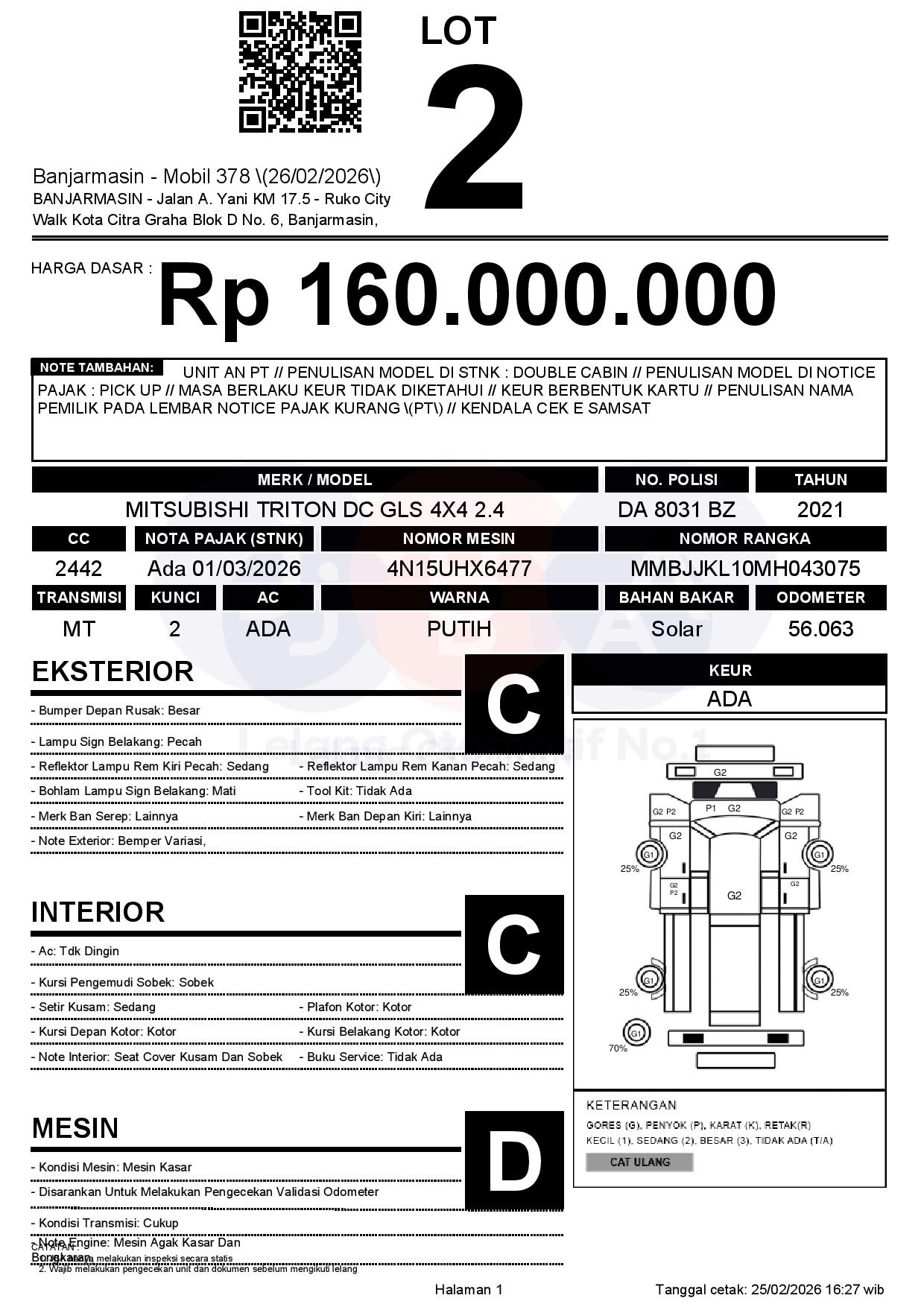 Tanggal Lelang: 26/02/2026 | 13:00 WITA