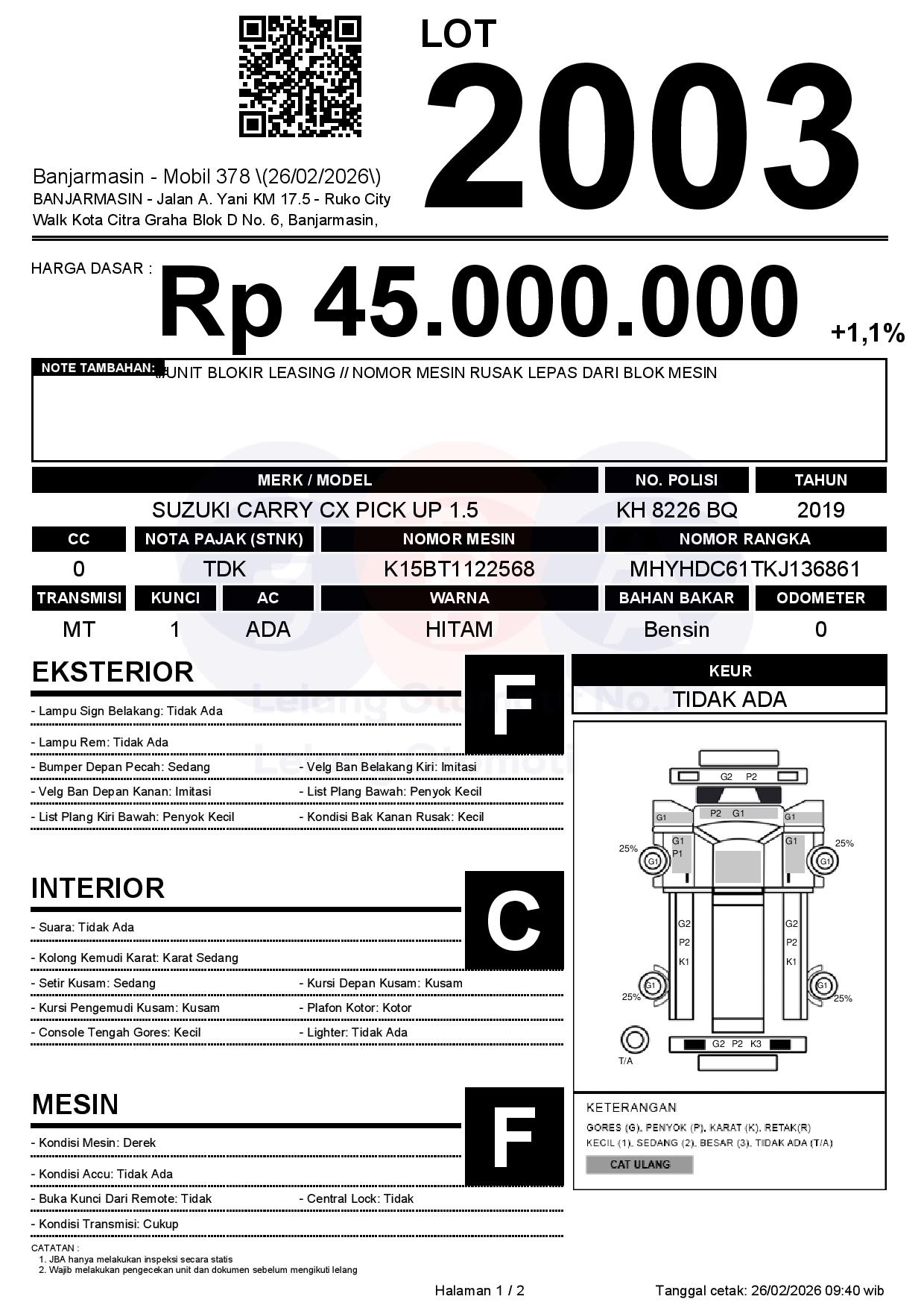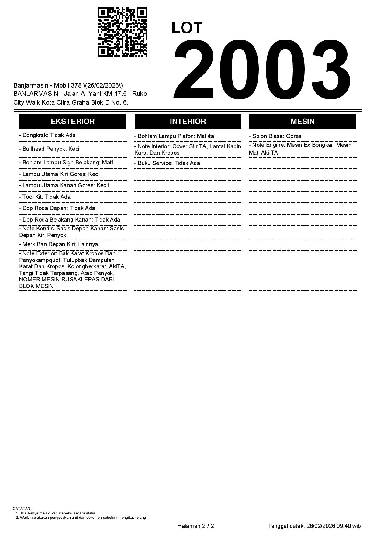 Tanggal Lelang: 26/02/2026 | 14:00 WITA