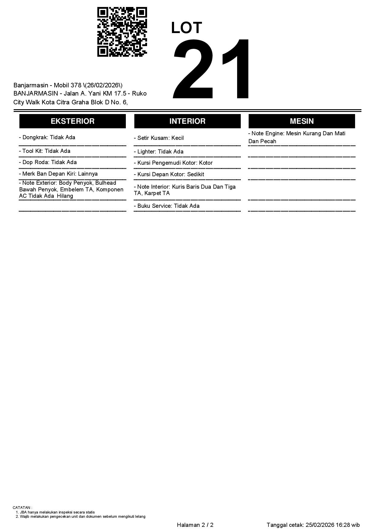 Tanggal Lelang: 26/02/2026 | 13:00 WITA