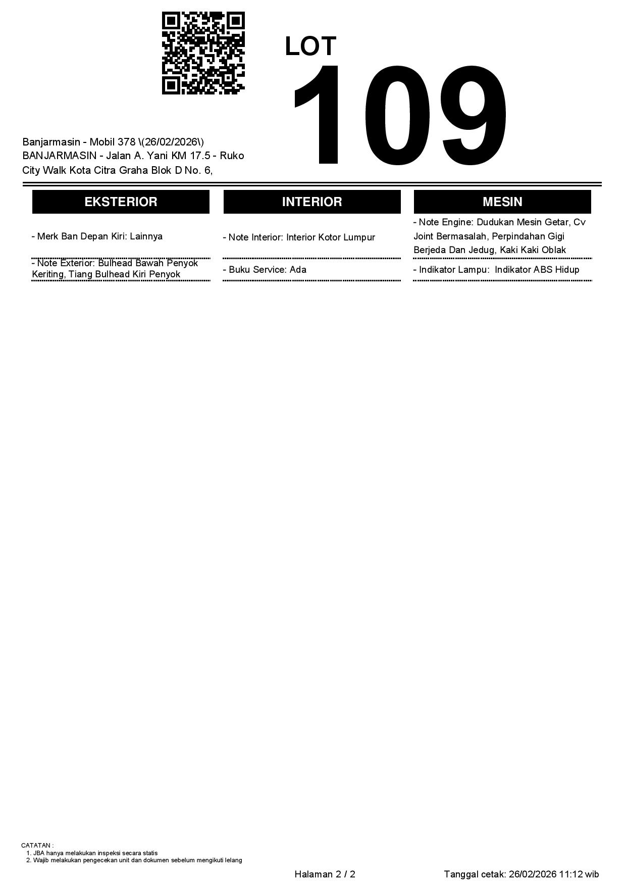 Tanggal Lelang: 26/02/2026 | 13:00 WITA