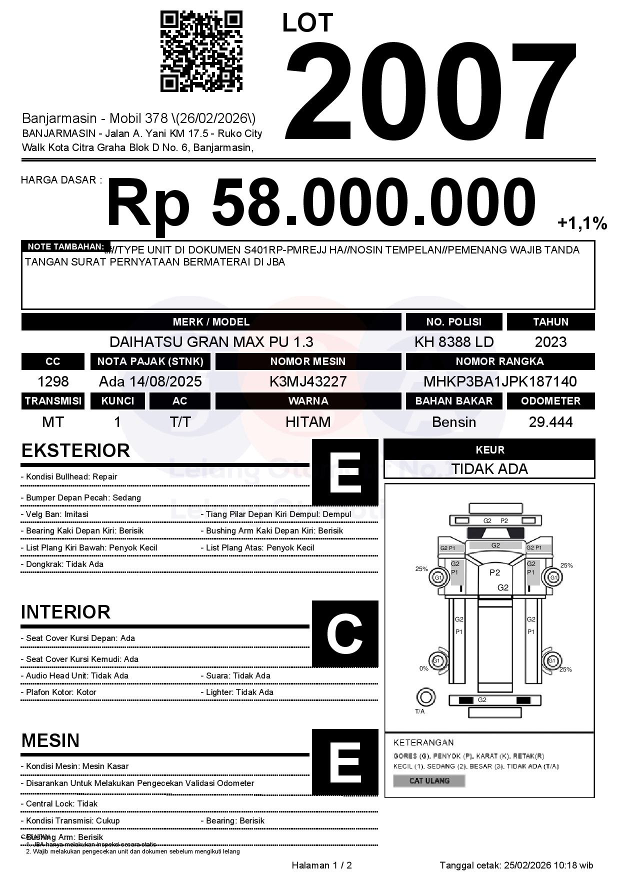 Tanggal Lelang: 26/02/2026 | 14:00 WITA