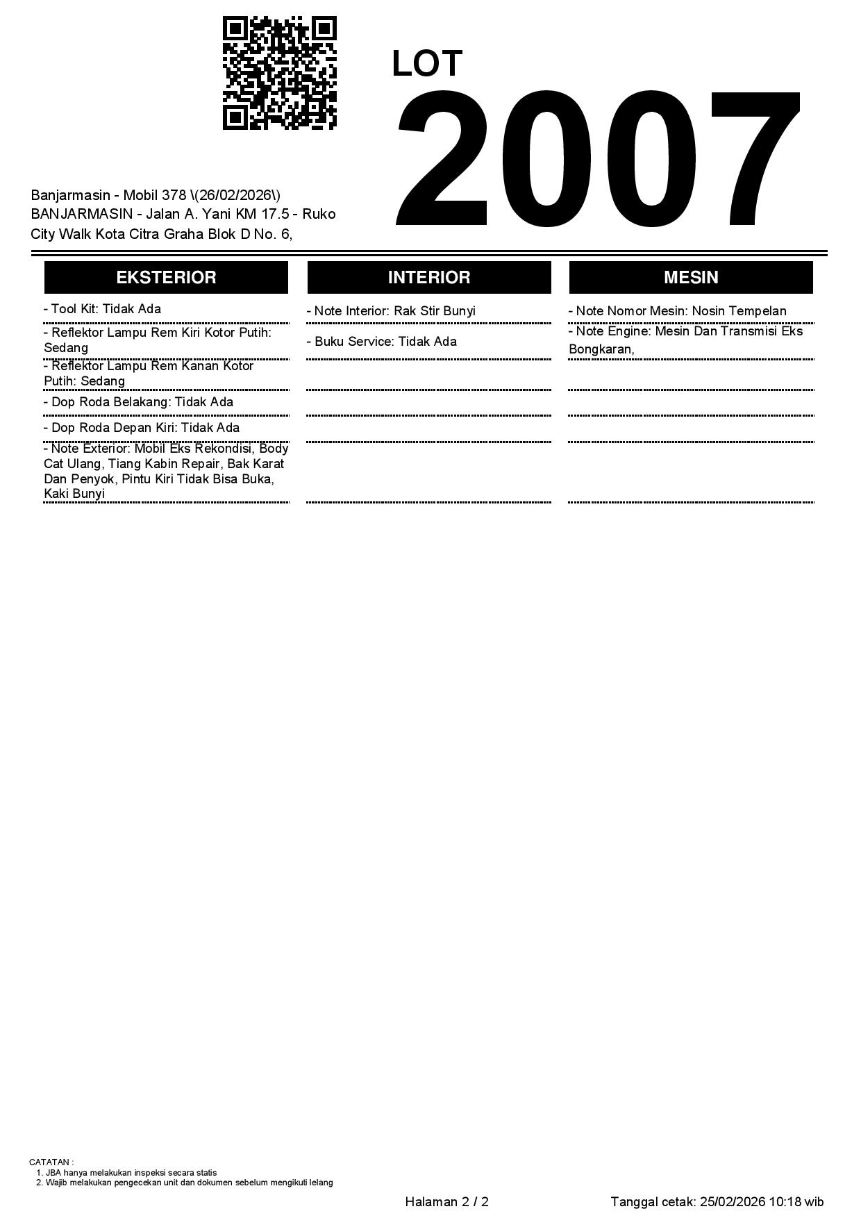 2. Peserta lelang wajib cek unit & dokumen
