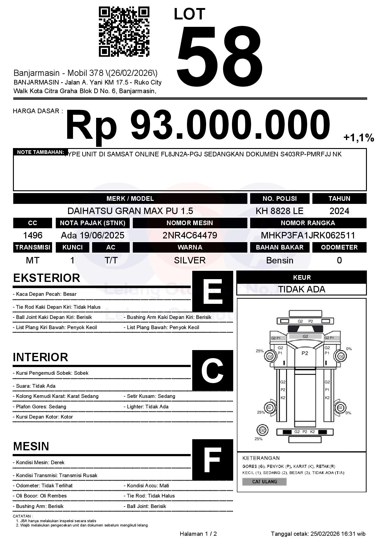 Tanggal Lelang: 26/02/2026 | 13:00 WITA