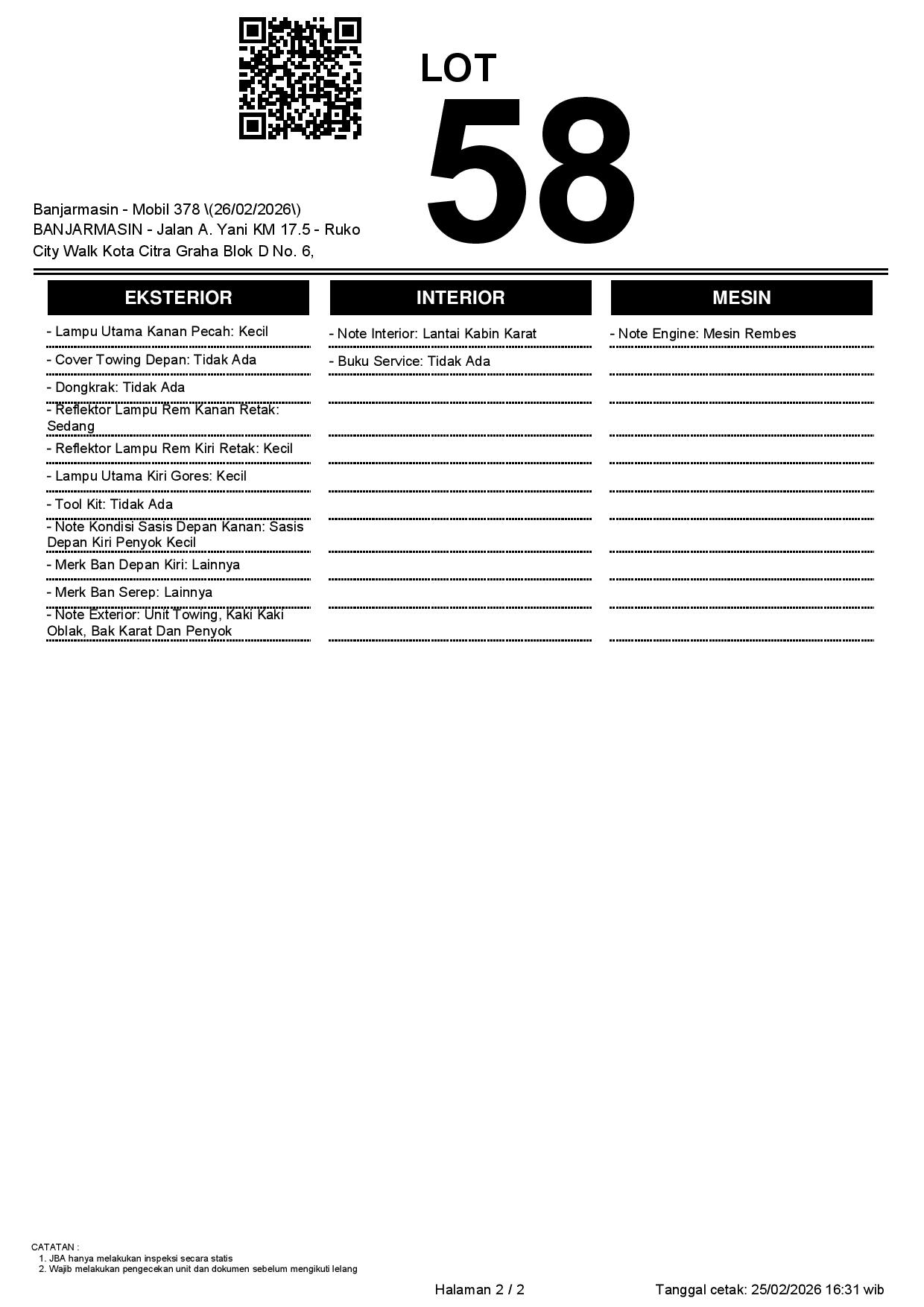 2. Peserta lelang wajib cek unit & dokumen