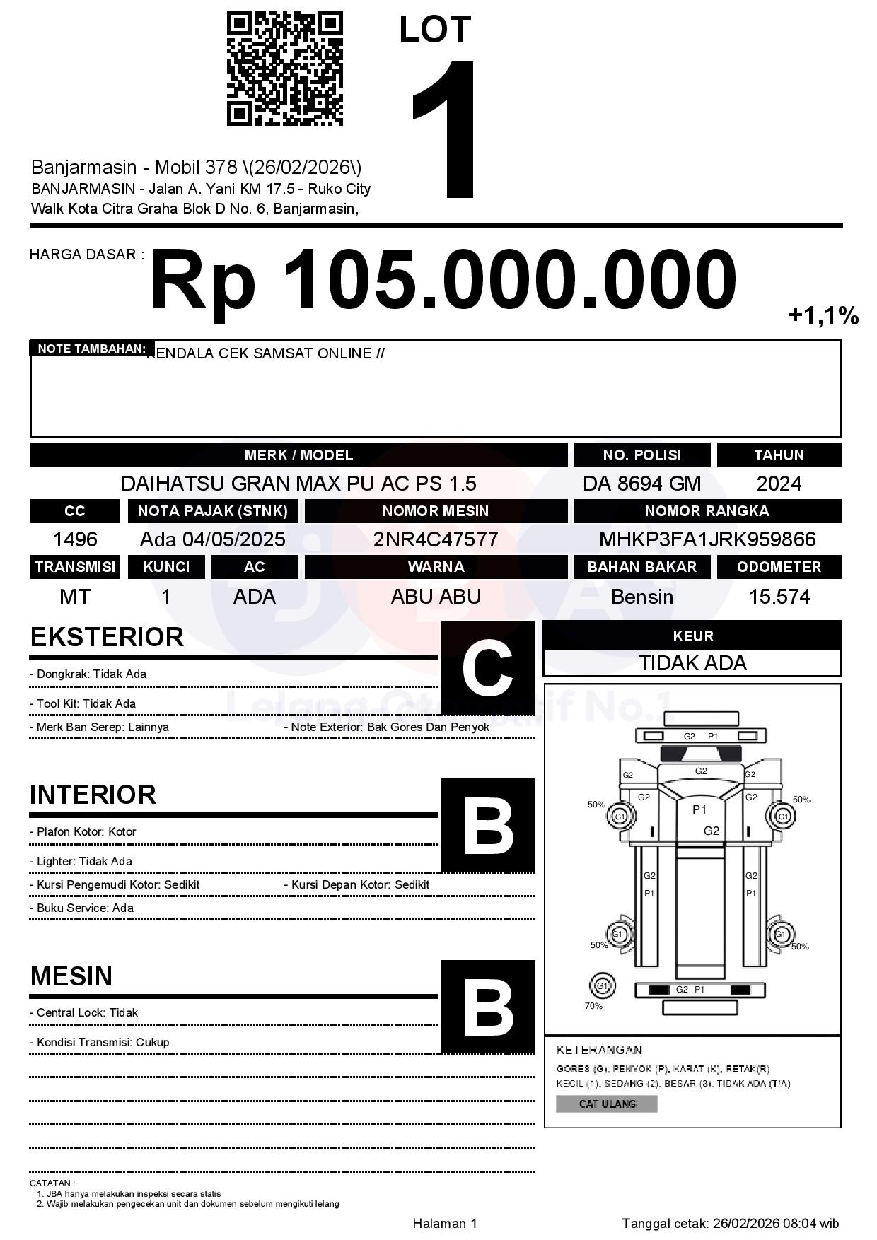 Tanggal Lelang: 26/02/2026 | 13:00 WITA