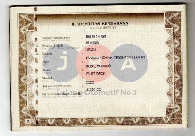 UNIT TIDAK DI CHEKLIST SECARA LANGSUNG // PEMENANG WAJIB KONFIRMASI KE JBA SETELAH PELUNASAN // PEMENANG WAJIB TTD SURAT PERNYATAAN BERMATERAI DI JBA // FOTO NOSIN TIDAK TERLAMPIR // MODEL UNIT DI BPKB FLAT DECK // TYPE UNIT FVZ34U-UDYIN4 (TRONTON) (6x4) // AN PT