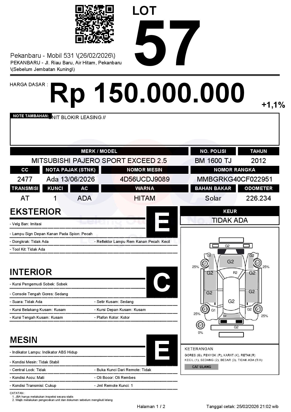 Tanggal Lelang: 26/02/2026 | 13:00 WIB