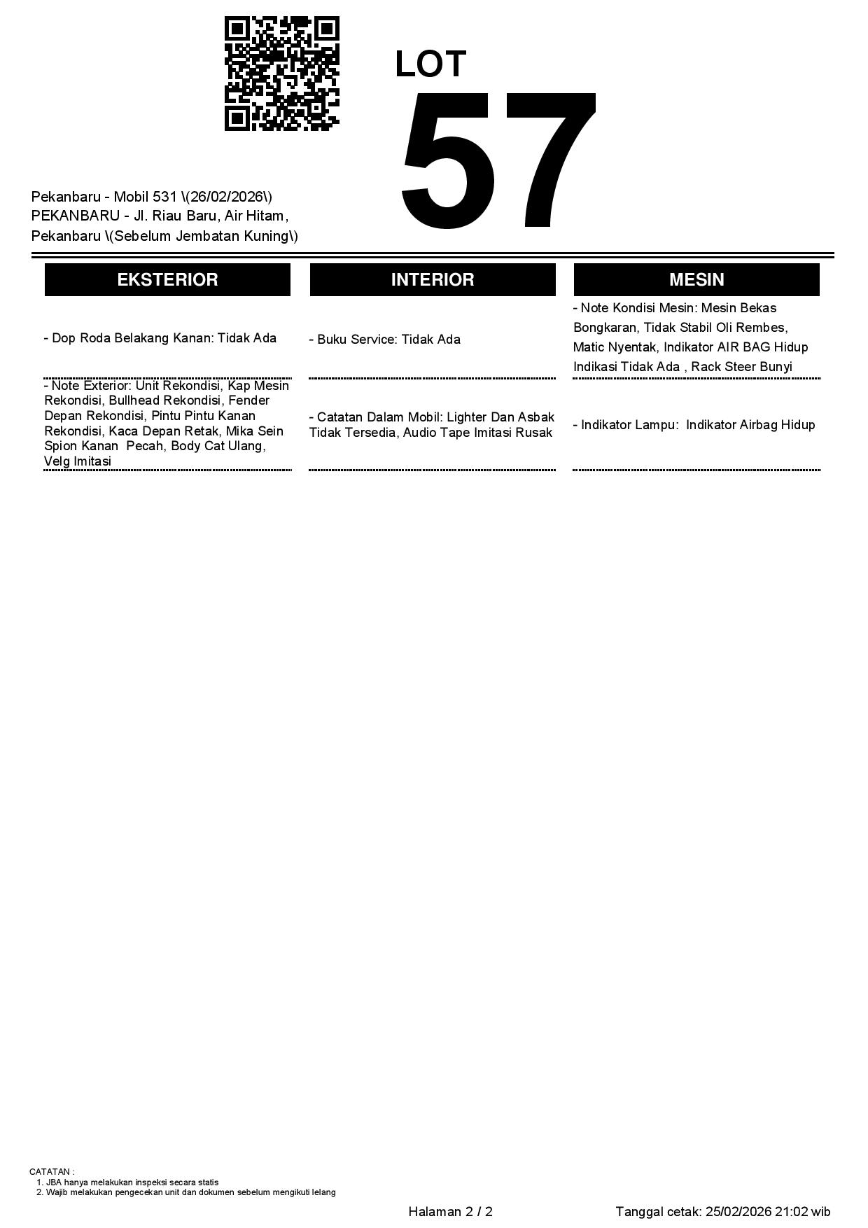 2. Peserta lelang wajib cek unit & dokumen