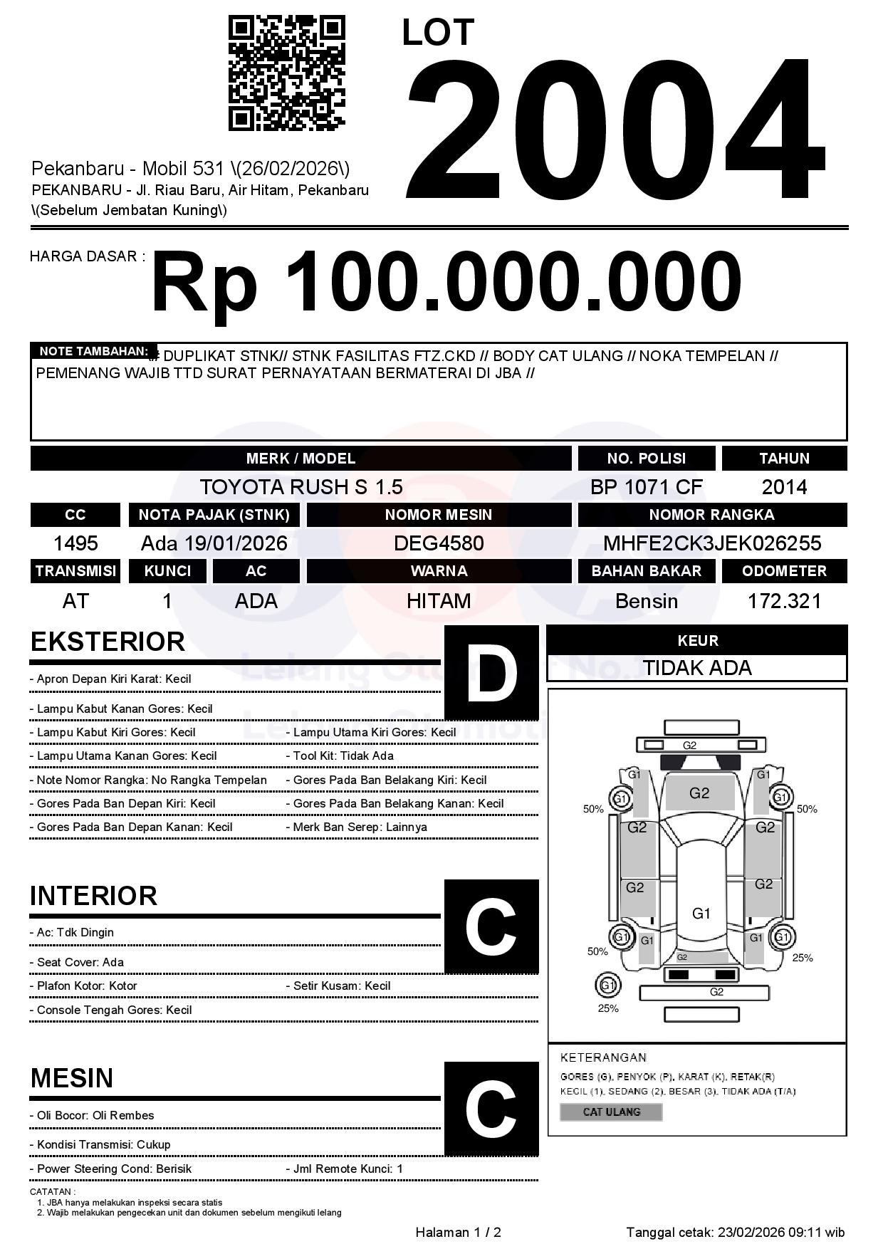 Tanggal Lelang: 26/02/2026 | 14:00 WIB