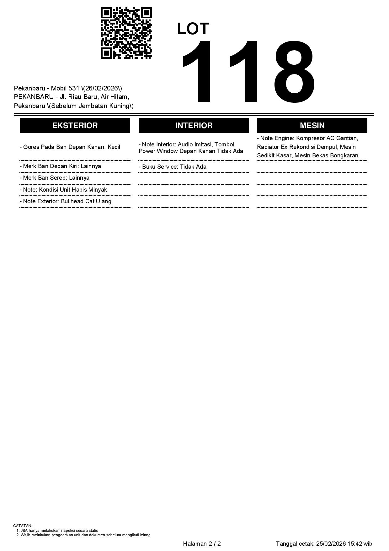 2. Peserta lelang wajib cek unit & dokumen