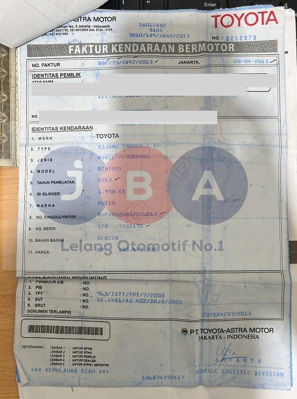 STNK FASILITAS FTZ.CKD // EX BBN //