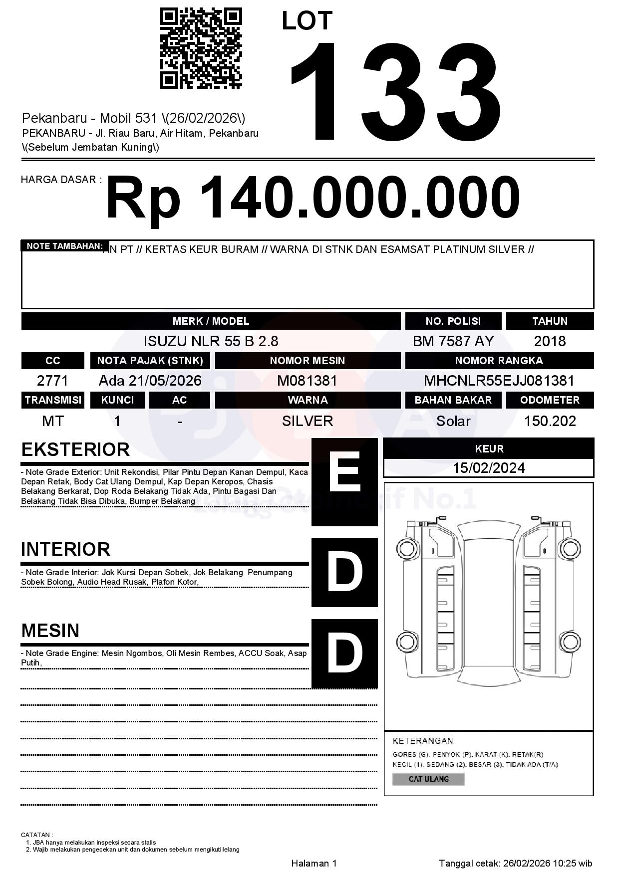 Tanggal Lelang: 26/02/2026 | 13:00 WIB