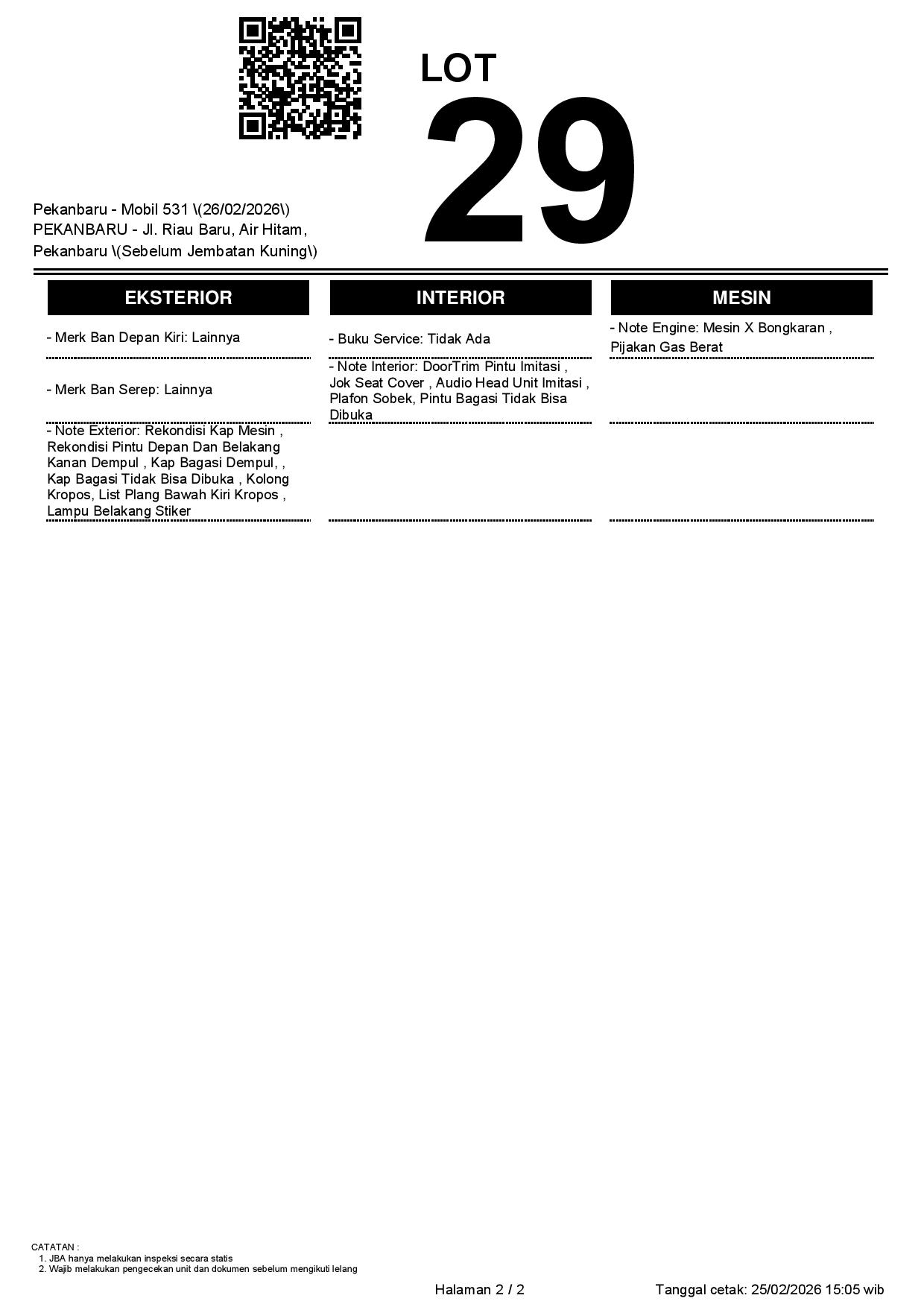 2. Peserta lelang wajib cek unit & dokumen