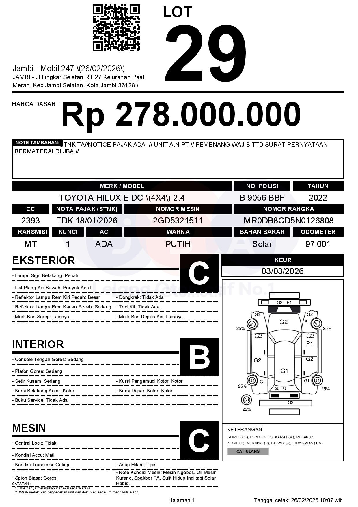 Tanggal Lelang: 26/02/2026 | 13:00 WIB