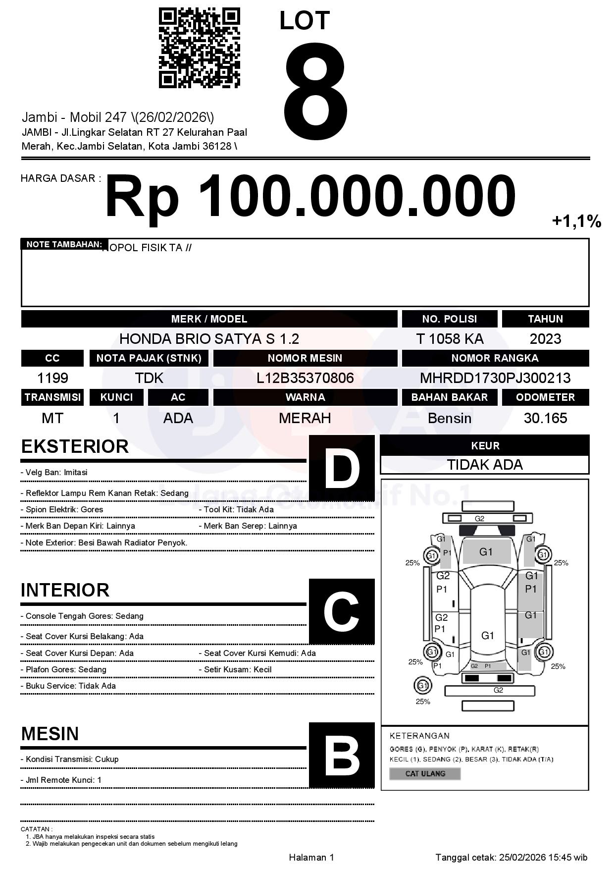 Tanggal Lelang: 26/02/2026 | 13:00 WIB