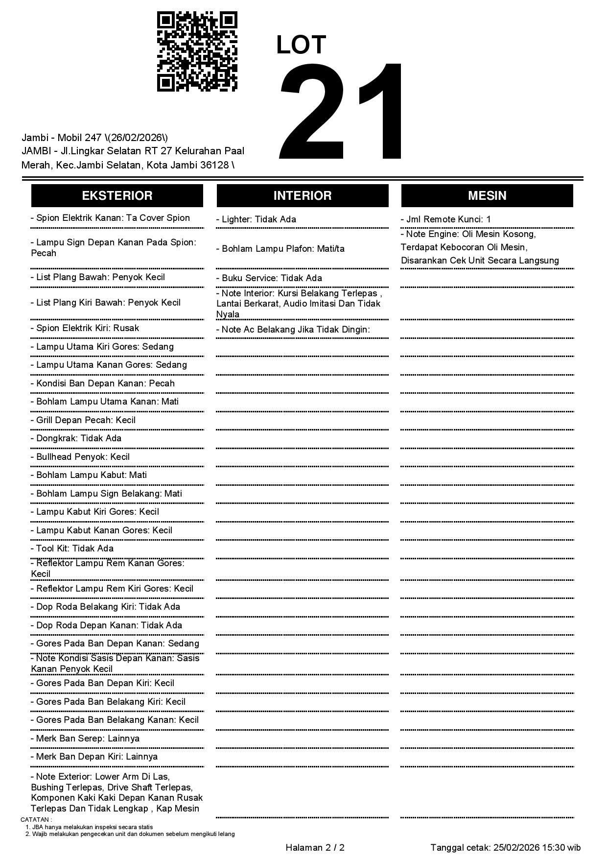 2. Peserta lelang wajib cek unit & dokumen