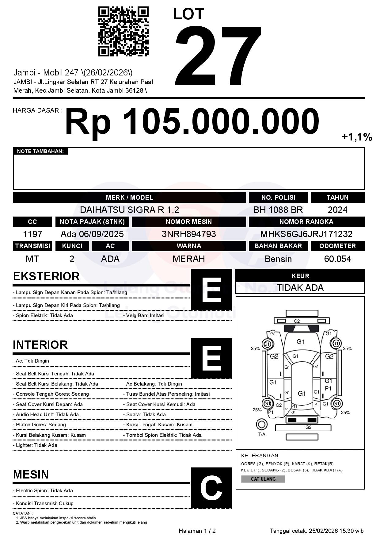 Tanggal Lelang: 26/02/2026 | 13:00 WIB