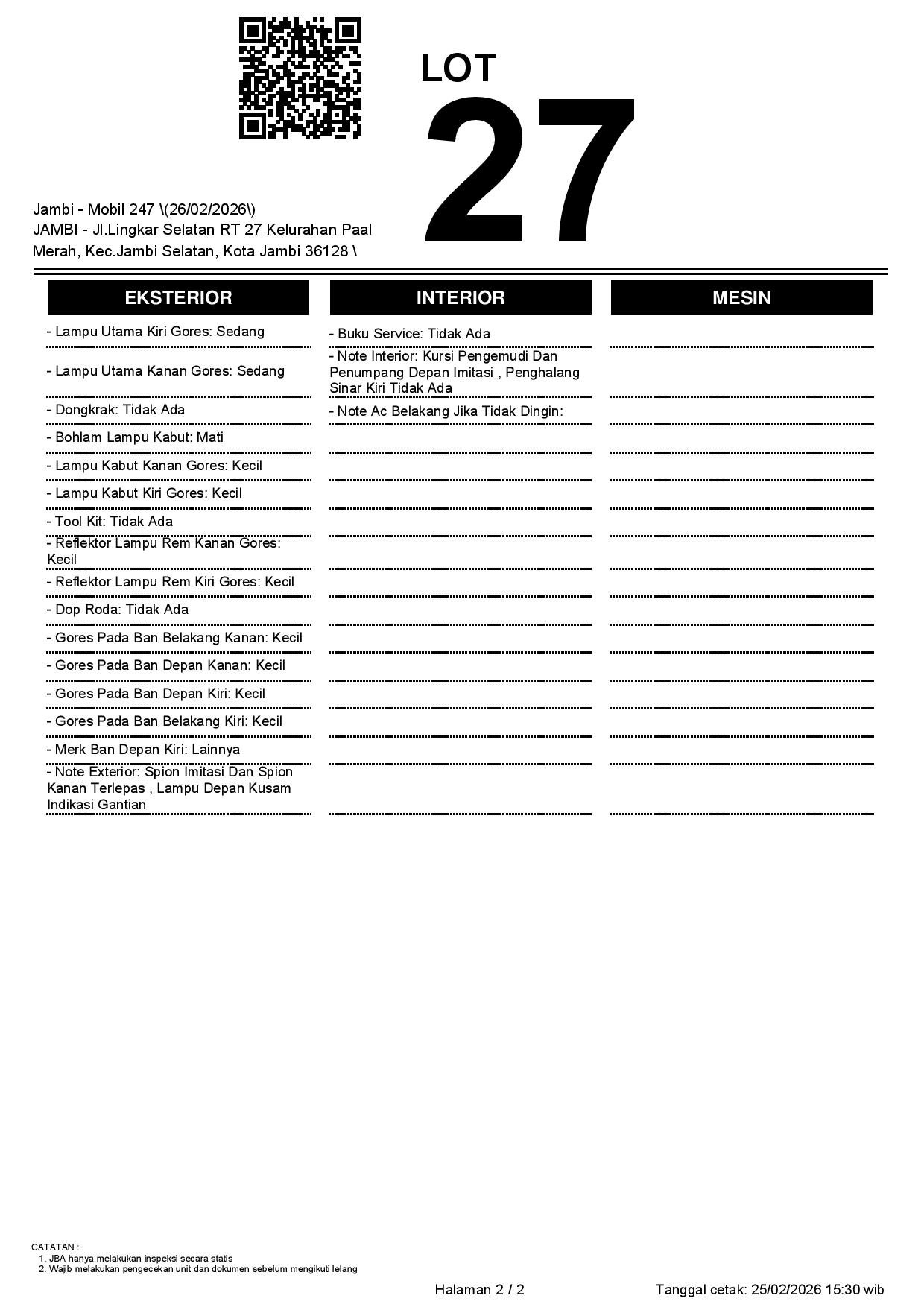 2. Peserta lelang wajib cek unit & dokumen