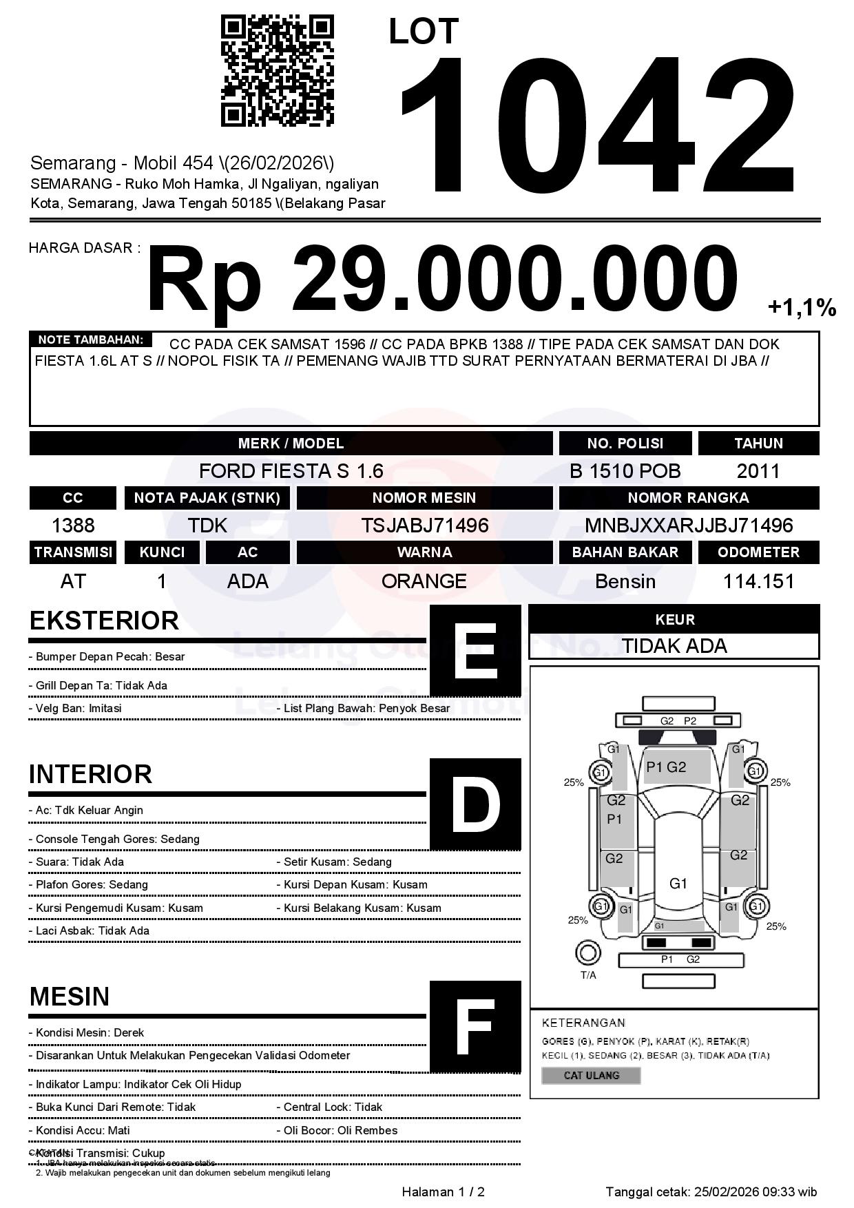 Tanggal Lelang: 26/02/2026 | 14:00 WIB